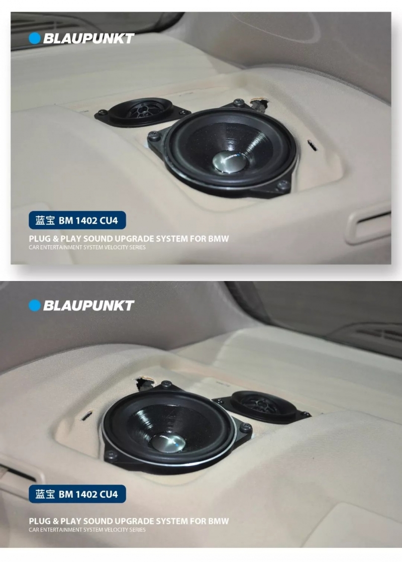原位安裝德國(guó)藍(lán)寶寶馬專(zhuān)車(chē)專(zhuān)用BM 1402 CM4的中音,直接對(duì)插。安裝好之后裝上門(mén)板。